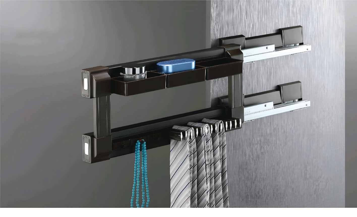 Streamline your wardrobe with the Premium Tie Rack, a sophisticated solution for maintaining and showcasing your tie collection. Designed for the discerning professional, this left pull out tie rack combines functionality, durability, and elegance to complement any modern closet.